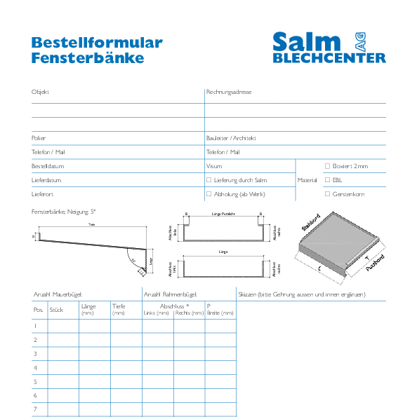 Bestellformular herunterladen, ausfüllen und an info@blechcenter-salm.ch senden.